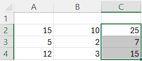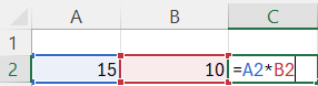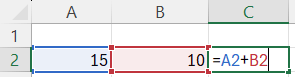 Questo modo di scrivere le formule permette di sfruttare le enormi potenzialità di calcolo di Excel, tra cui la possibilità di aggiornare in automatico i risultati quando anche una sola delle celle coinvolte nel calcolo viene modificata: la formula =A2+B2 cambierà quando verrà modificato il contenuto delle celle A2 o B2, la formula =15+10 invece darà sempre come risultato 25.