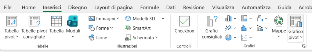 Dalla barra multifunzione cliccare sul menù “Inserisci” → “Tabella Pivot