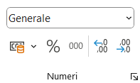 Uno dei comandi più importanti relativi alla formattazione delle celle è senza dubbio quello legato al formato. Nella scheda “Home”, sezione “Numeri”, è presente un elenco a discesa dal quale è possibile scegliere una delle diverse modalità di visualizzazione del contenuto delle celle.