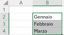 Il risultato finale, che sarà equivalente ad un copia/incolla del contenuto, dipenderà dalla natura della cella di partenza: se il contenuto è testuale verrà ricopiato tale e quale, nella figura sottostante la parola “Excel” verrà ripetute sulle altre 2 celle sottostanti.