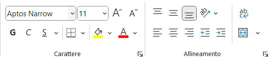 Nella scheda “Home” della barra multifunzione sono disponibili i comandi più utilizzati nelle operazioni di formattazione, ad esempio il tipo e la dimensione del carattere, l’allineamento orizzontale e verticale relativo al contenuto delle celle.